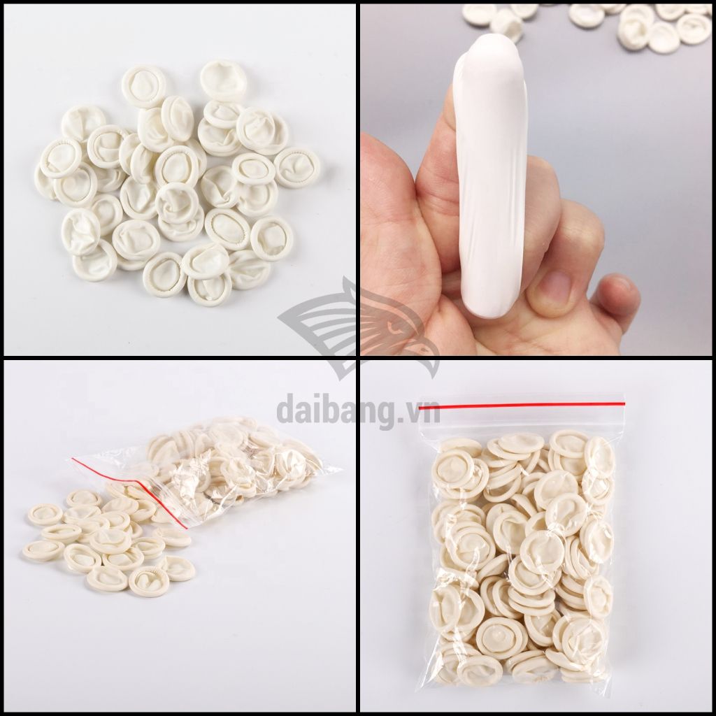 - Bọc ngón cao su dùng trong y tế là loại có đai, chống tuột khi sử dụng nhưng không hề bị thiết quá chặt, không gây cảm giác đau và không để lại vết hằn sau khi sử dụng.