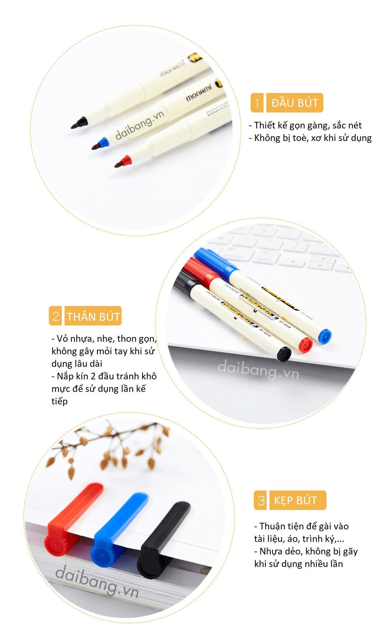 Bút Namepen F (1 đầu) và Bút Namepen T (2 đầu) là hai loại phổ biến nhất của Monami tại Việt Nam. Nó thường được các công ty Hàn Quốc sử dụng trong sản xuất. Chúng tôi NHẬP KHẨU TẬN GỐC sản phẩm này và cam kết GIÁ BÁN BUÔN tốt nhất miền Bắc