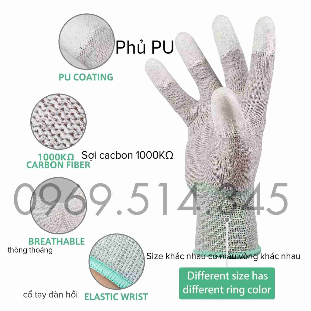 - Chống tĩnh điện: Một số loại găng tay phủ PU còn có khả năng chống tĩnh điện, thích hợp cho các ngành công nghiệp điện tử và phòng sạch.